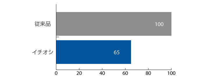 製造する際に必要とされる電力量の比較でございます。イチオシは従来品に比べ消費電力が35%低減され、環境に優しいタップでございます。