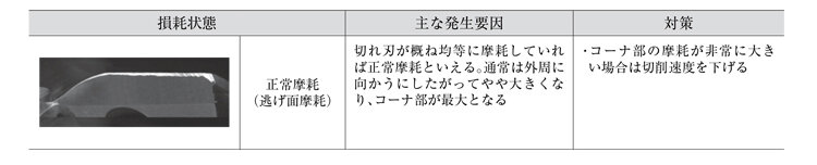 ★印が切れ刃としての性能が発揮できる限界、すなわち寿命にあたりますので、これを超える前に工具交換、あるいは再研磨すべきといえます。