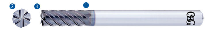 Multi-flute square type and radius type carbide end mills designed for stable and high-efficiency milling of high-hardness steels. Large diameter sizes (dia. 16, 20 mm) have been newly added to the lineup. With the addition of the DUROREY coating uniquely engineered for high-hardness steels, high chipping resistance is made possible even in work materials exceeding 60 HRC, allowing long tool life and high speed milling.