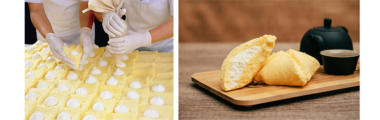 ふわふわのスポンジで、甘さ控えめな特製生クリームを包んだこのお菓子は、愛知県豊橋市を代表する、まさに「ソウルスイーツ」。50年以上愛され続けているロングセラー商品で、幼いころから親しんでいる私にとって、一口食べると子どもの頃の思い出がよみがえり、ほっこりした気持ちになります。