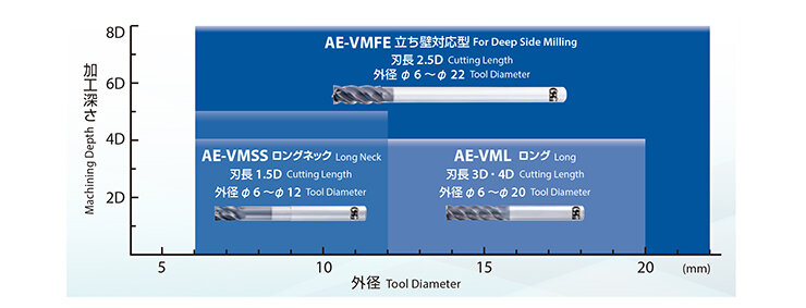 「深い側面を攻めたい」時はAE-VML。 「高精度な立ち壁を、能率よく仕上げたい」時はAE-VMFE。